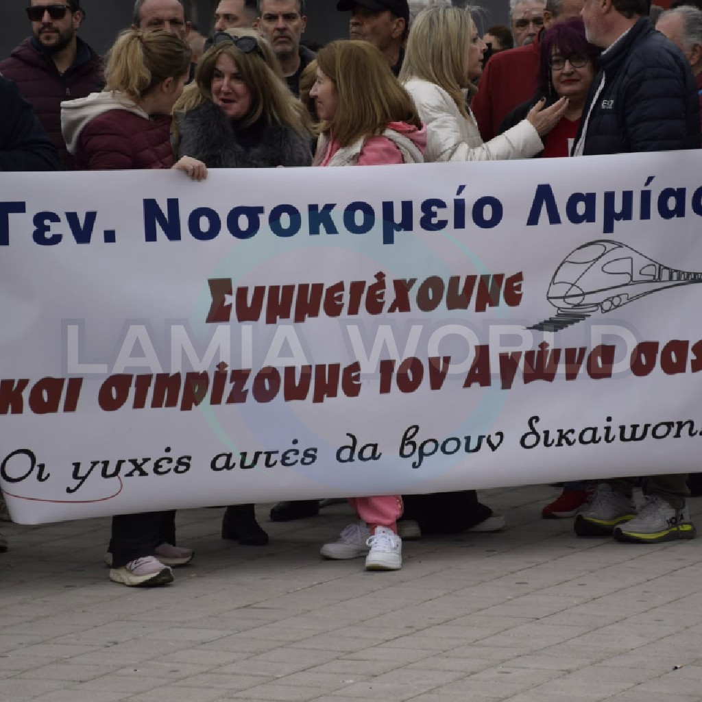 Μεγάλη ήταν η συμμετοχή των πολιτών στη συγκέντρωση που πραγματοποιήθηκε το μεσημέρι του Σαββάτου (28/2) στην πλατεία Πάρκου στη Λαμία, με αίτημα την απόδοση δικαιοσύνης για τα 57 θύματα της τραγωδίας των Τεμπών.