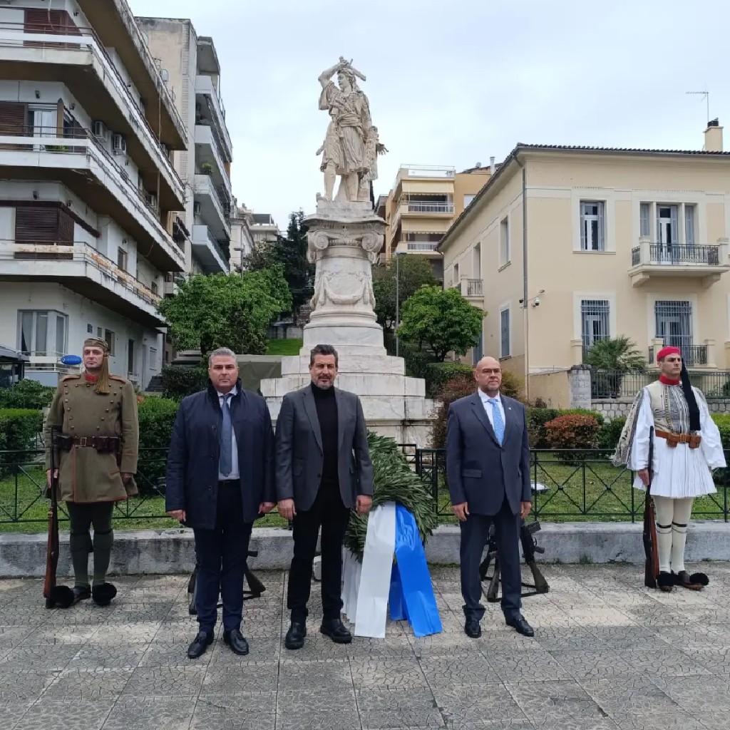 Η ημέρα ξεκίνησε με επιμνημόσυνη δέηση στο μνημείο του ήρωα, ενώ ακολούθησε η καθιερωμένη κατάθεση στεφάνων στον επιβλητικό Ανδριάντα του στην ομώνυμη πλατεία. Ιδιαίτερο τόνο και βαθύ συμβολισμό στην τελετή προσέδωσε η συμμετοχή μελών του Συλλόγου Ευζώνων της Προεδρικής Φρουράς, με επικεφαλής τον Πρόεδρο Νικόλαο Γαβριλάκη και τον Αντιπρόεδρο Δημήτρη Πουτουρίδη.
