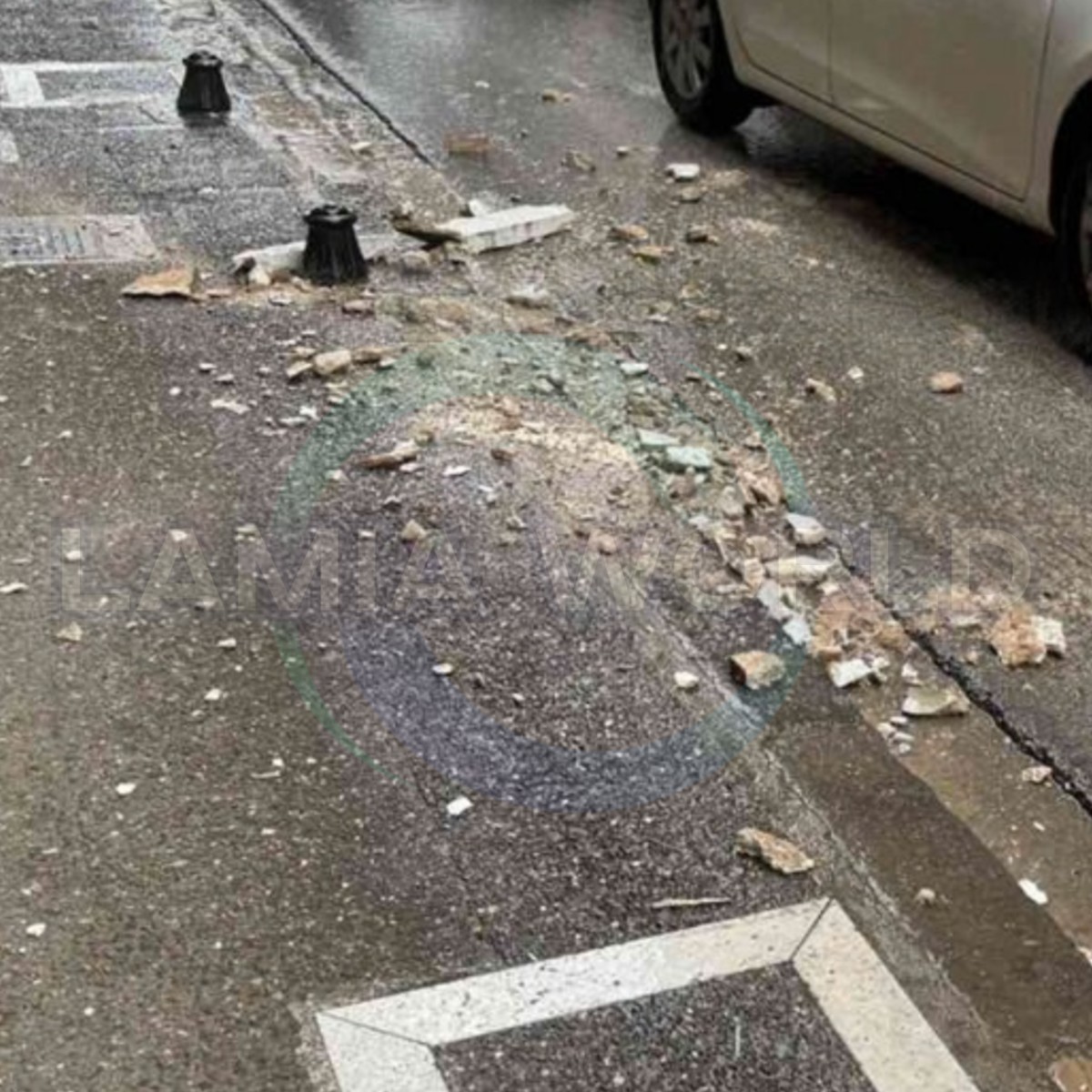 Παραλίγο τραγωδία στο κέντρο της Λαμίας από πτώση σοβάδων
