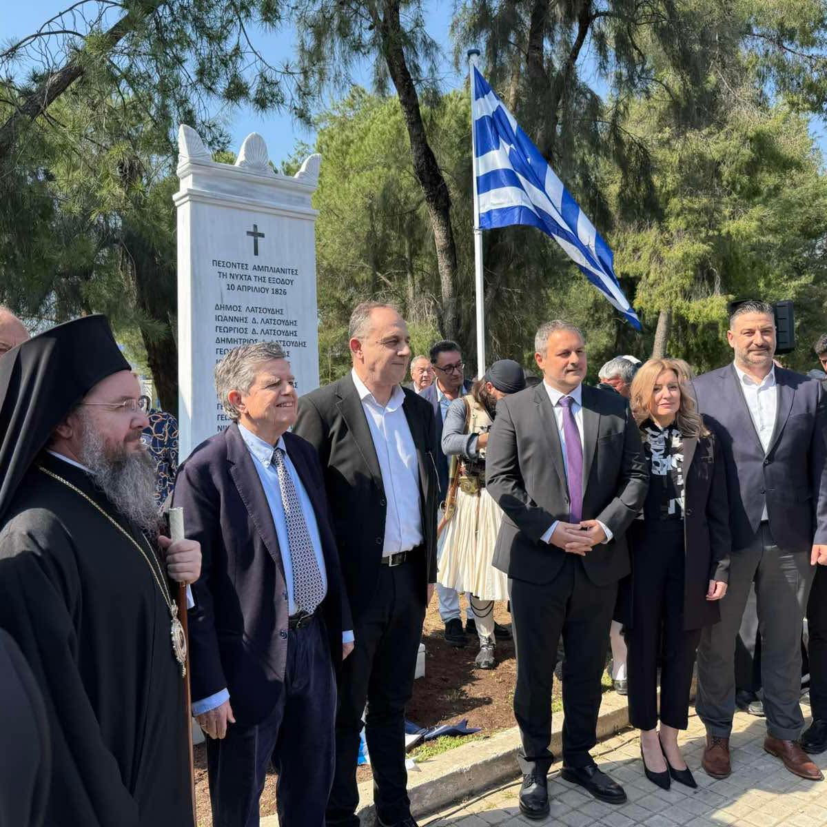 Ο Δήμαρχος Λαμιέων κατέθεσε στεφάνι στο νέο μνημείο, ενώ δεν παρέλειψε να ευχαριστήσει δημόσια τον κ. Θανάση και την κ. Μαρίνα Μαρτίνου για τη γενναιόδωρη συμβολή τους, χάρη στην οποία κατέστη δυνατή η ανέγερση του αγάλματος. Η παρουσία της Λαμίας στον εορτασμό της Εξόδου αναδεικνύει την κοινή ιστορική πορεία των λαών της Στερεάς Ελλάδας, από τα βουνά της Ρούμελης έως τις ντάπιες του Μεσολογγίου.