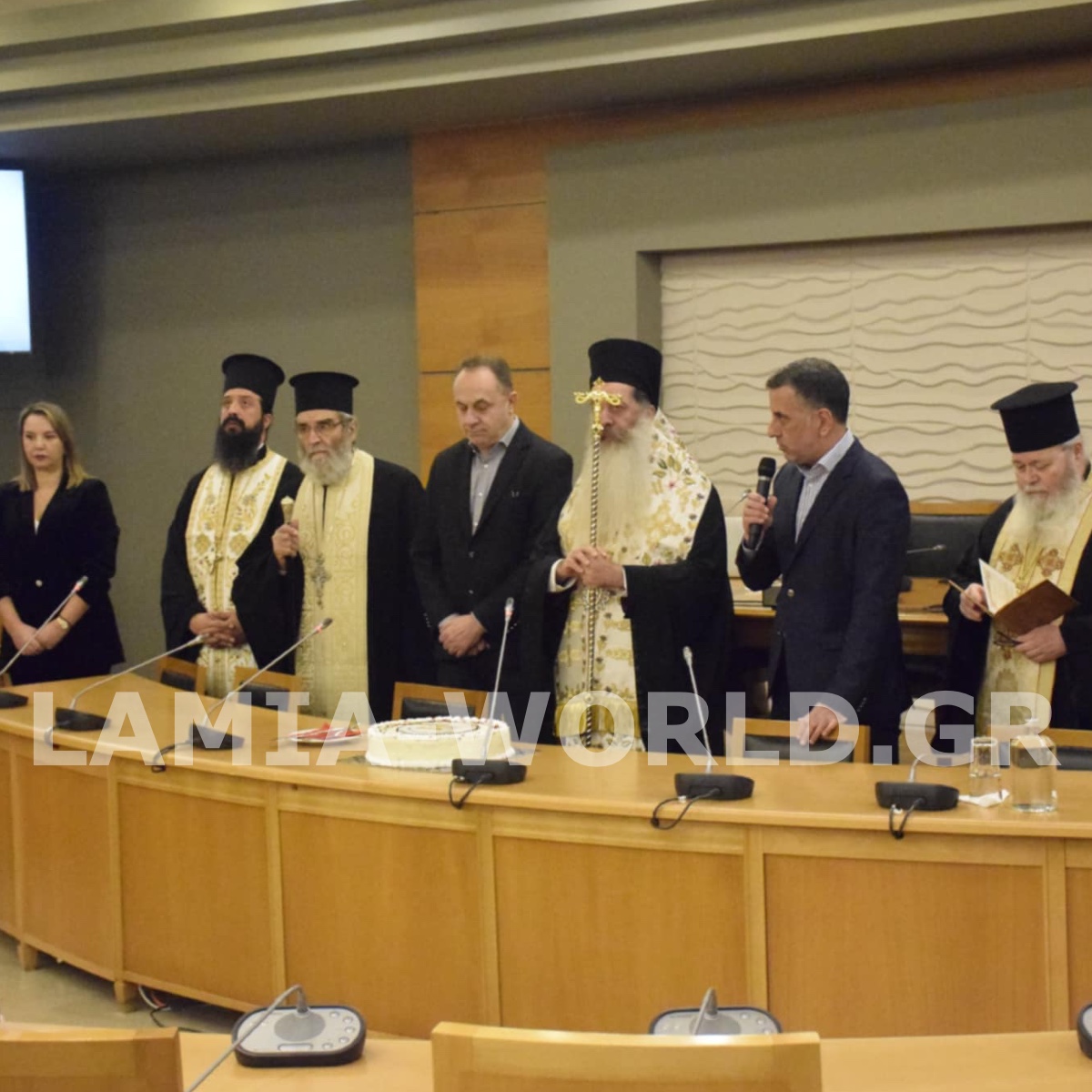 Στην πρώτη τακτική συνεδρίαση του Δημοτικού Συμβουλίου Λαμιέων για τη νέα χρονιά πραγματοποιήθηκε η κοπή της πρωτοχρονιάτικης πίτας, παρουσία του Σεβασμιωτάτου Μητροπολίτη Φθιώτιδας κ. Συμεών, ο οποίος έδωσε την ευλογία του. Οι ευχές για μια δημιουργική χρονιά με υγεία σε όλους κυριάρχησαν, ενώ το φλουρί κέρδισε ο Αντιδήμαρχος Αθλητισμού Θανάσης Στεργίου.